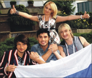 2008年。プルシェンコは右端。うしろで両手を広げている女性が後に嫁となるヤナです。